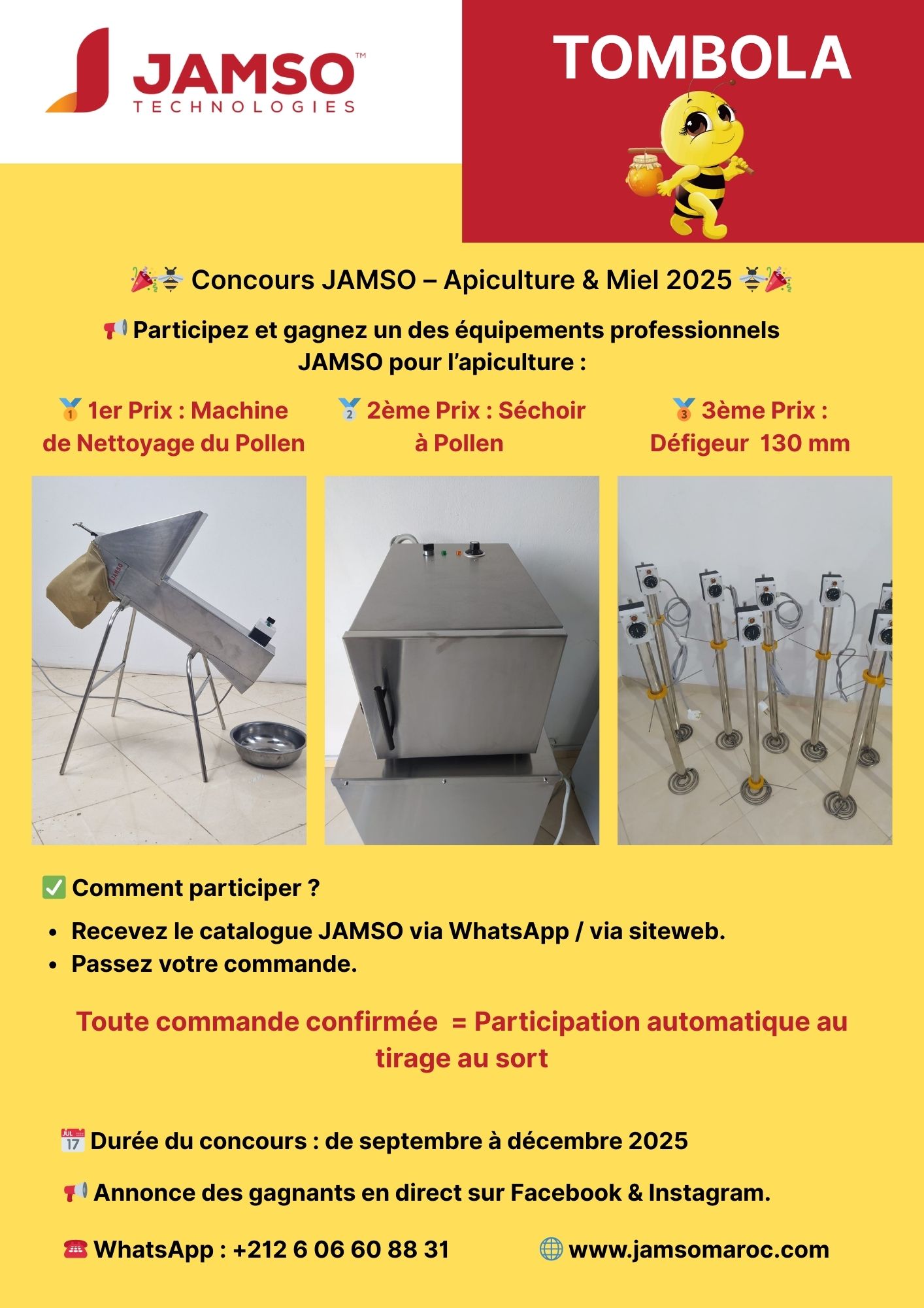 🎉 Tombola JAMSO – Apiculture & Miel 2025 🎉 Commandez votre matériel entre septembre et décembre 2025 et participez automatiquement au